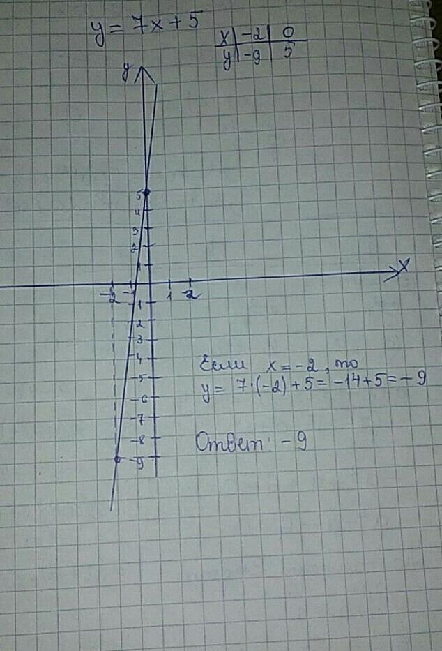 То есть, при х=-2, у= 7×(-2)+5=-14+5=-9.