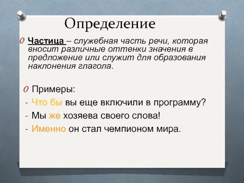4. вносит различные оттенки в предложение или служит для образования наклонений глагола