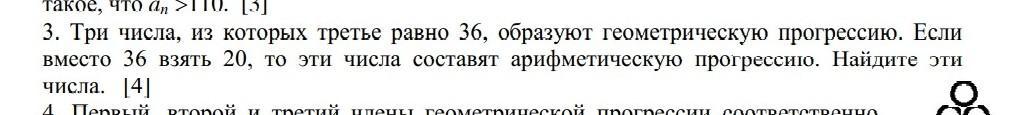 Согласно условию, арифметическая прогрессия отличается от геометрической только третьим членом, равным 20: