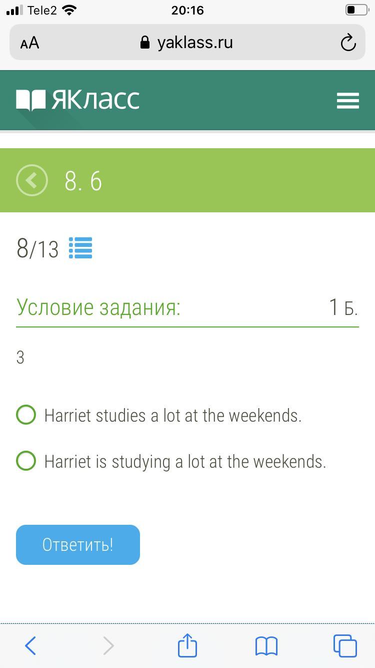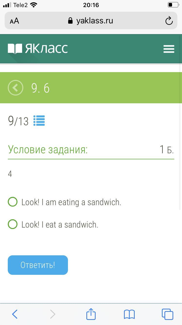 He doesn't play football very often. We aren't having a party now. Harriet studies a lot at the weekends. Look! I'm eating a sandwich.