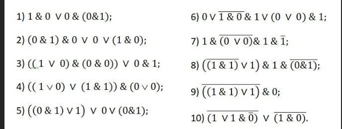 1) НЕ (логическое отрицание. Обозначается чертой над операндом, либо над выражением),
