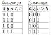 3) ИЛИ (логическое сложение, дизъюнкция. Обозначается в виде перевернутой вверх подковы).