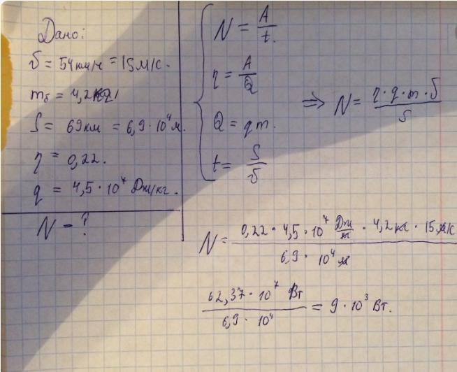 m=P*t/(η*q)=32*10^6*259200/(0.25*46*10^6)=721252 кг (721 т)