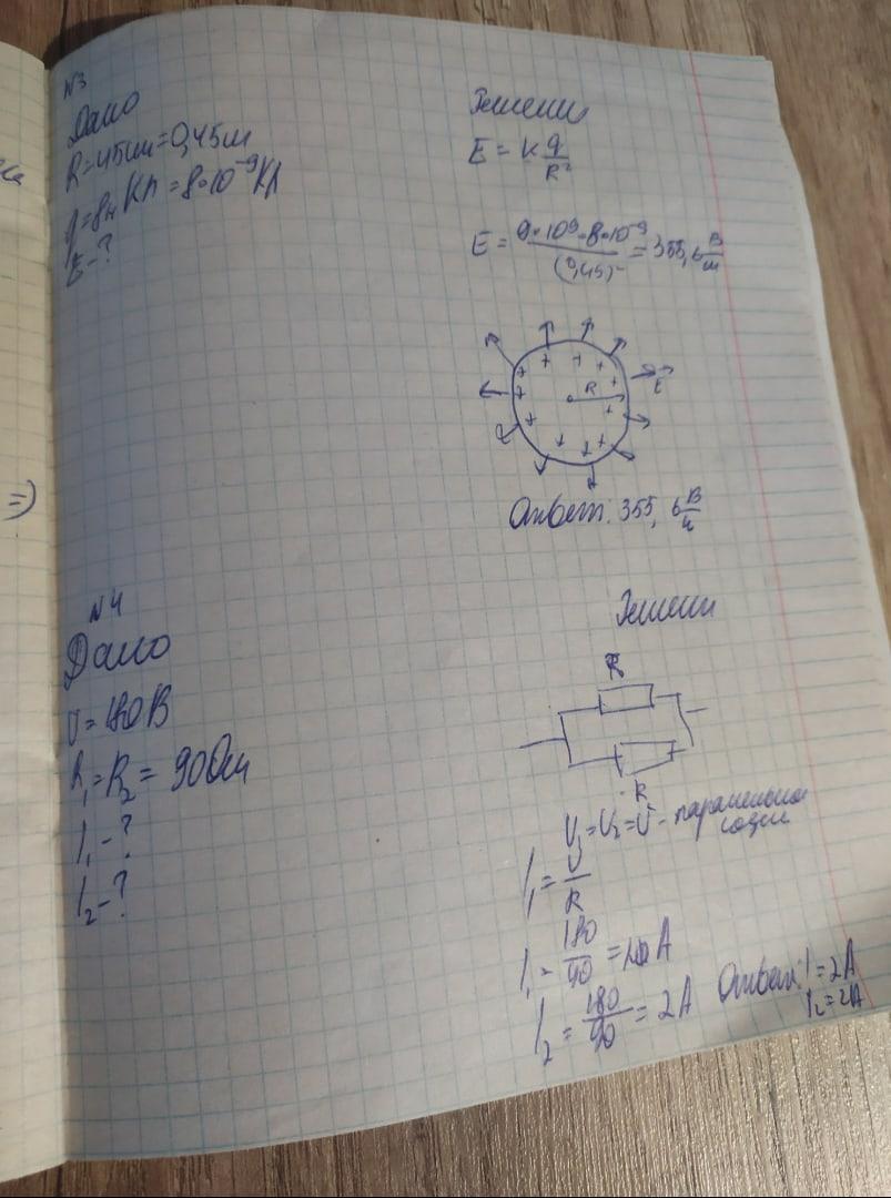 4. В сеть с напряжением 180 В включены параллельно две электрические лампы сопротивлением 90 Ом каждая. Определить силу тока, проходящего через каждую лампу.