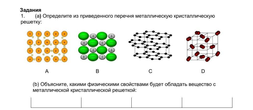 б) Объясните какими физическими свойствами будет обладать вещества с металлической кристаллической решеткой