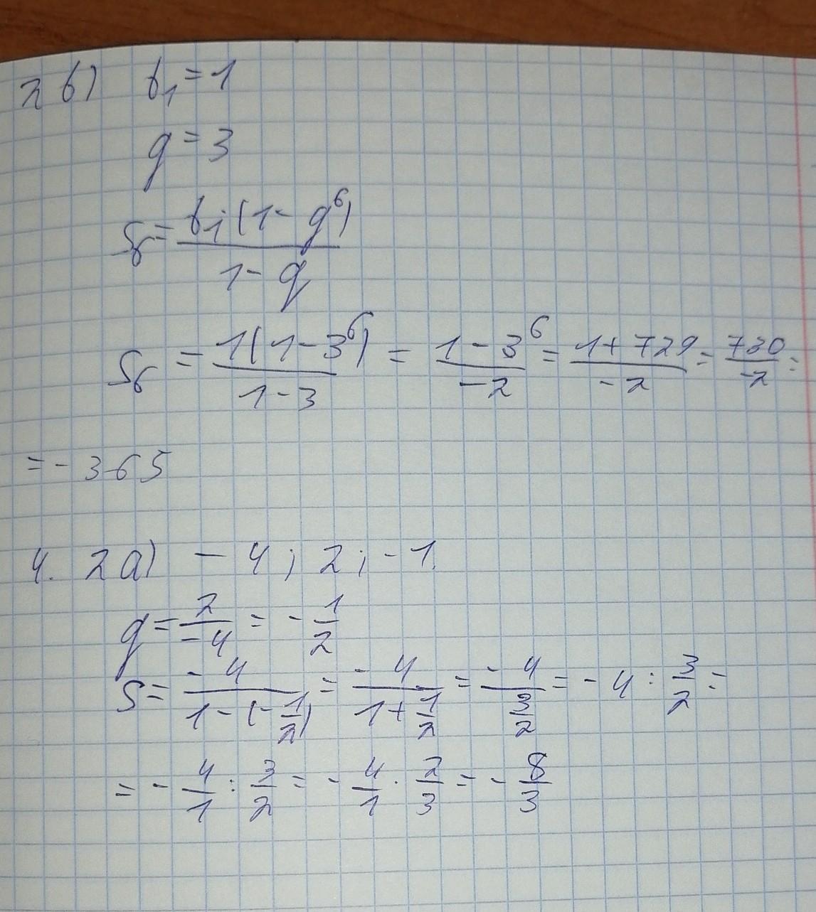 4. (2) а) Найдите сумму бесконечно убывающей геометрической прогрессии -4;2;-1;...
