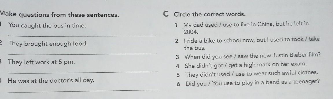 1) Did you catch the bus in time?