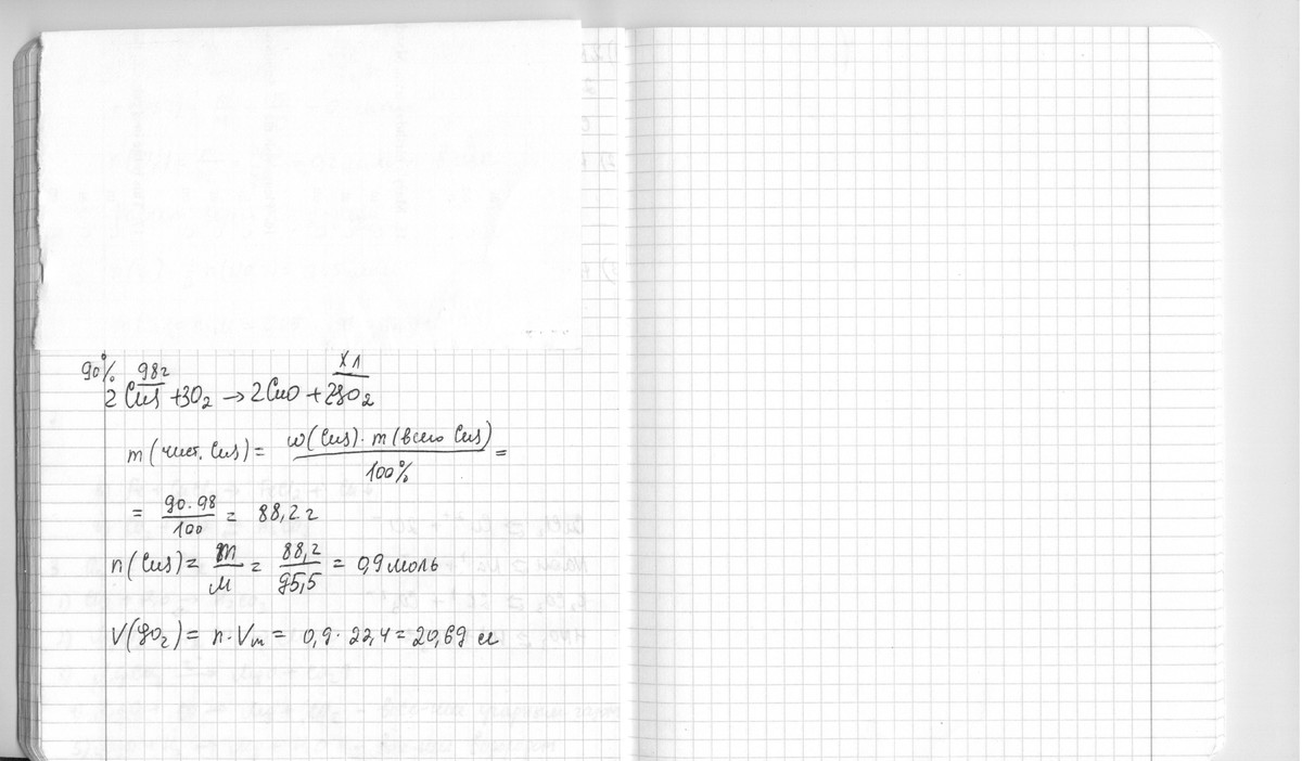 Зависит четвертная оценка!!! Сколько литров сернистого газа образуется при обжиге 98 граммов сульфида меди (2), содержащего 10% примесей?