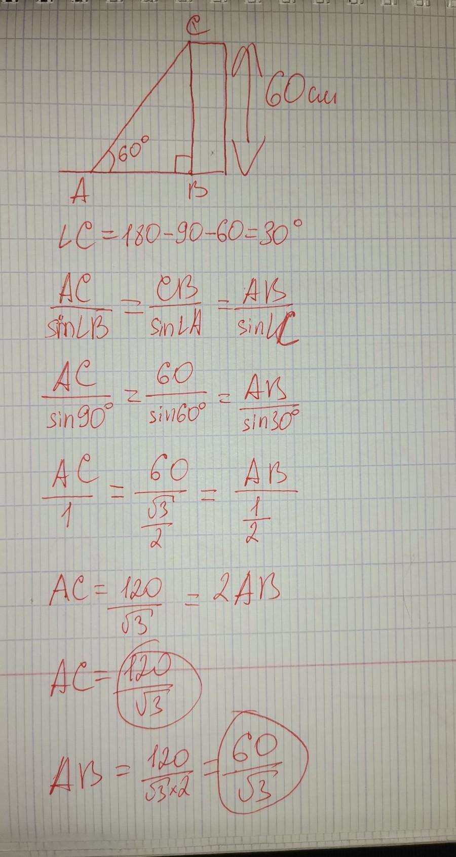 синус60=60/х; √3/2=60/х. Х=60*2/√3=40√3 расстояние от короля до светящегося прожектора.