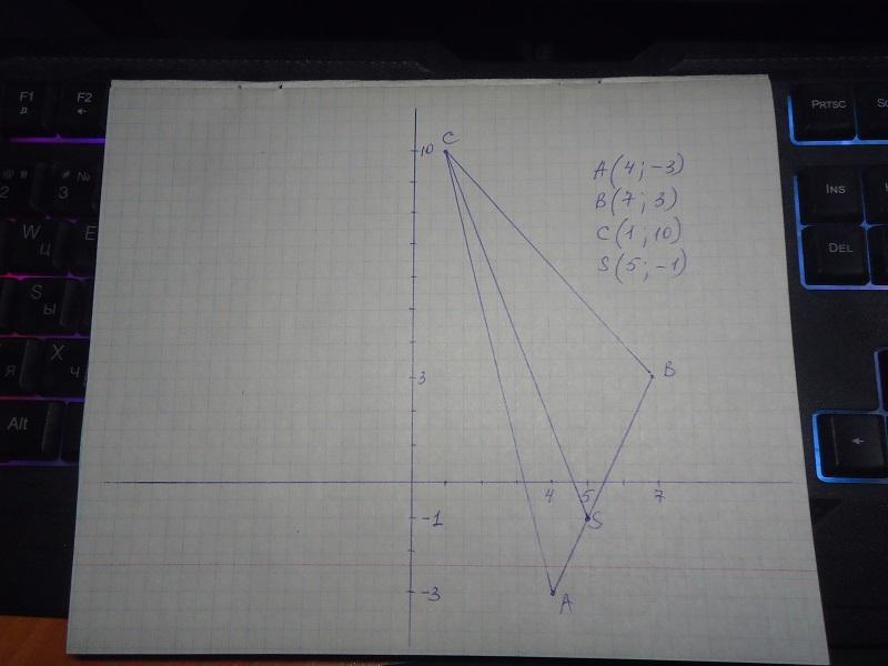 известны координаты вершин треугольника АВС. А(4;-3) В(7;3) С(1;10). Найти уравнение прямой СS, если точка S такая, что BS/SA=2