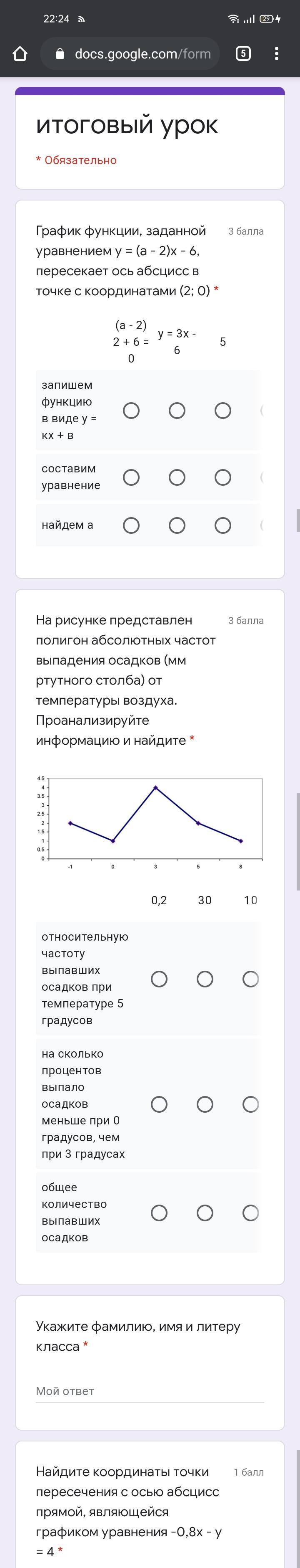 График функции, заданной уравнением у = (а - 2)х - 6, пересекает ось абсцисс в точке с координатами (2; 0) *