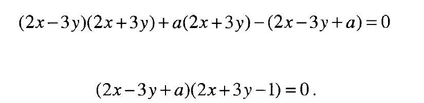 (2x-3y)(2x+3y)+a(2x+3y)-(2x-3y+a)=0