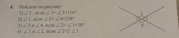 3) <1 и <2, <3 и <4 - смежные, значит их сумма = 180°