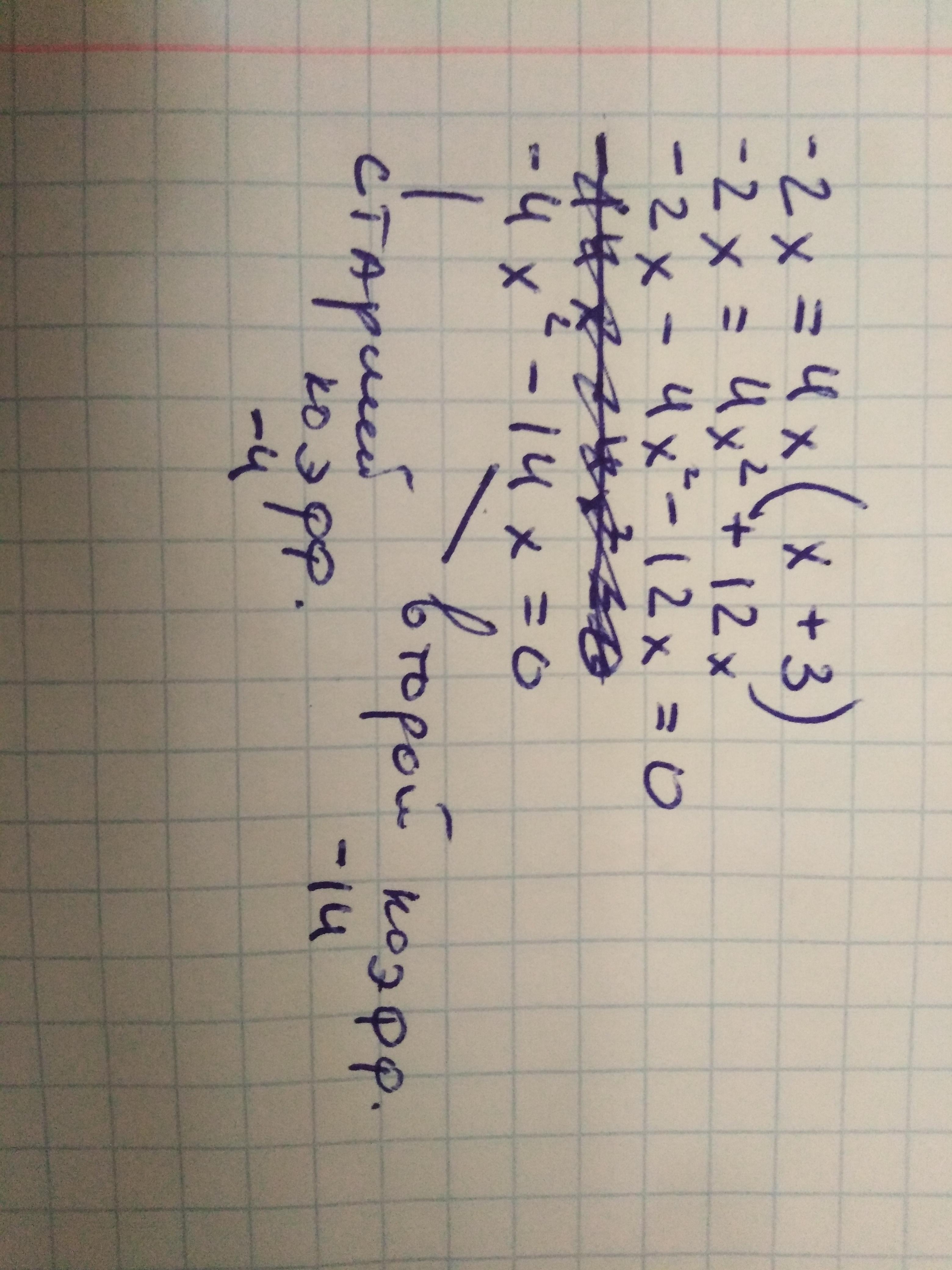 -2х=4х(х+3) к виду ax2+bx+c=0 и укажите