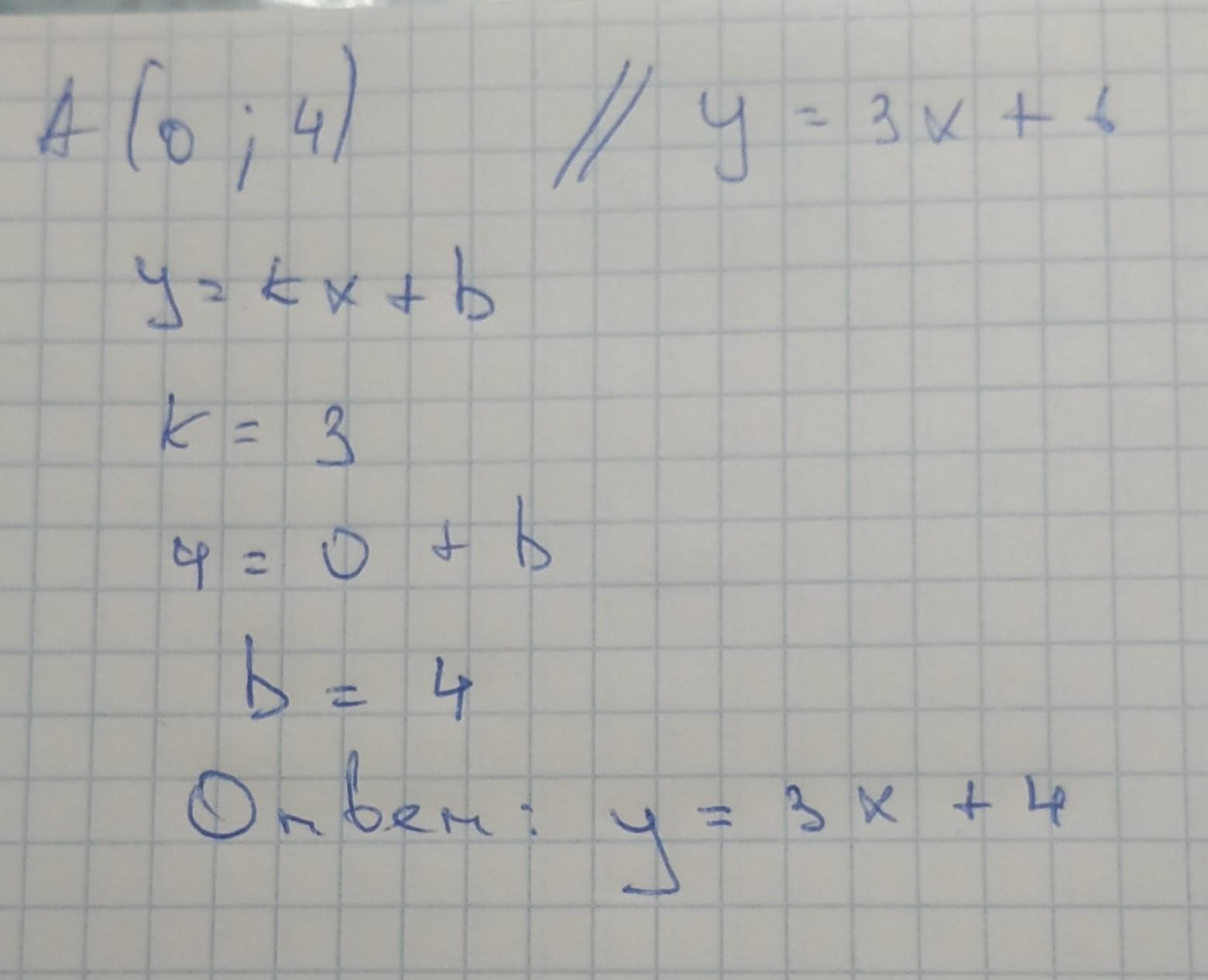 Задайте формулой функцию, график которой проходит через точку (0; 4) и параллелен графику функции y = 3x+6