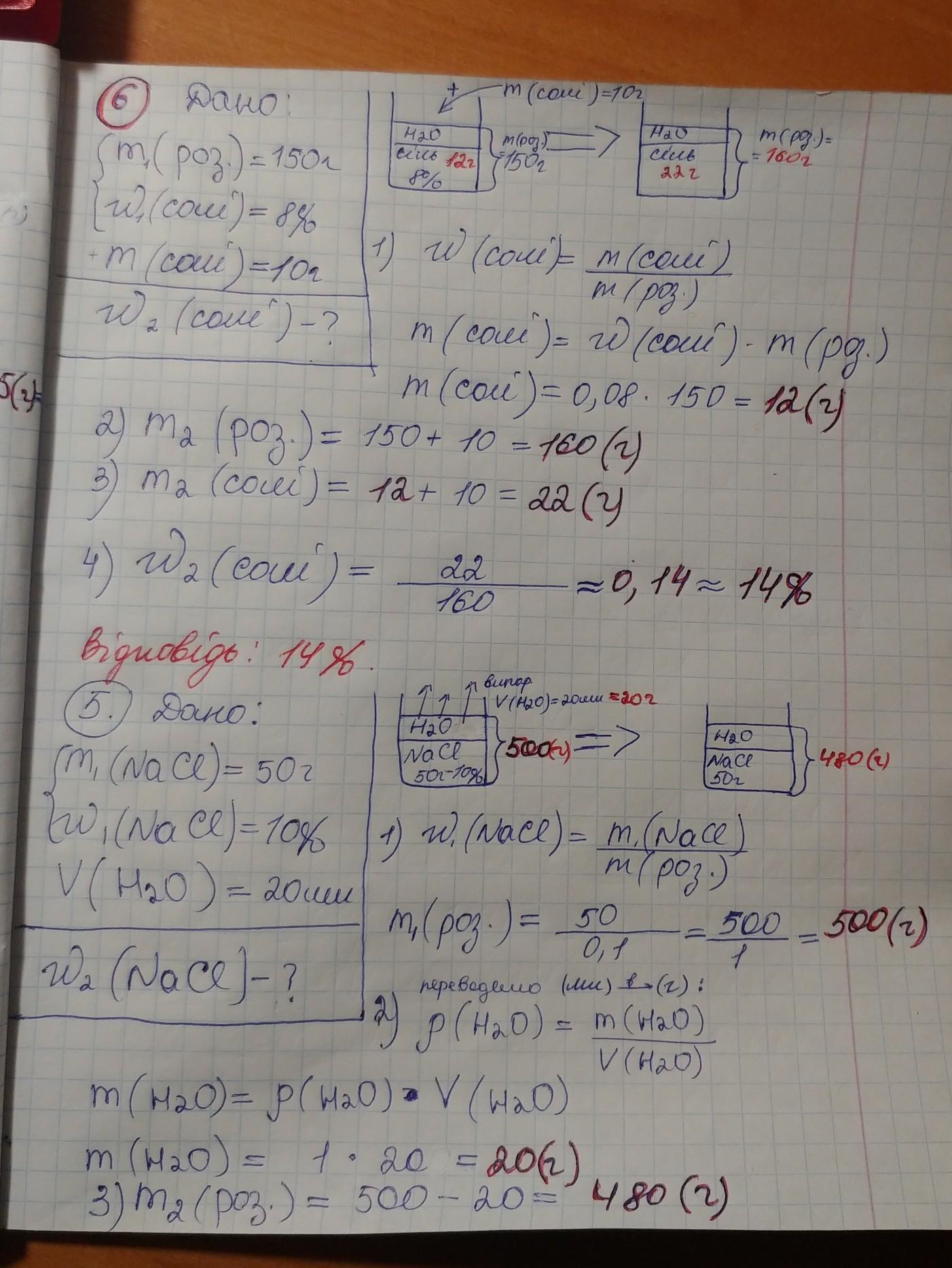 5.Знайти масову частку натрію хлориду в розчині, якщо із 50 г 10% розчину солі при нагріванні випарувалось 20 мл води.