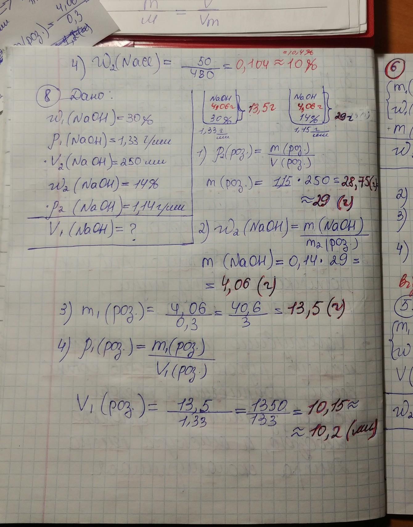 8. У лабораторії є розчин з масовою часткою натрій гідроксиду 30%, густина якого 1,33г/мл. Який об’єм цього розчину необхідно взяти для приготу-вання розчину об’ємом 250 мл з масовою часткою натрій гідроксиду 14% та густиною 1,15 г/мл?