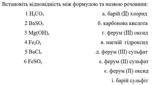 1 карбонова кислота, 2барій сульфат, 3в, 4г, 5а, 6е