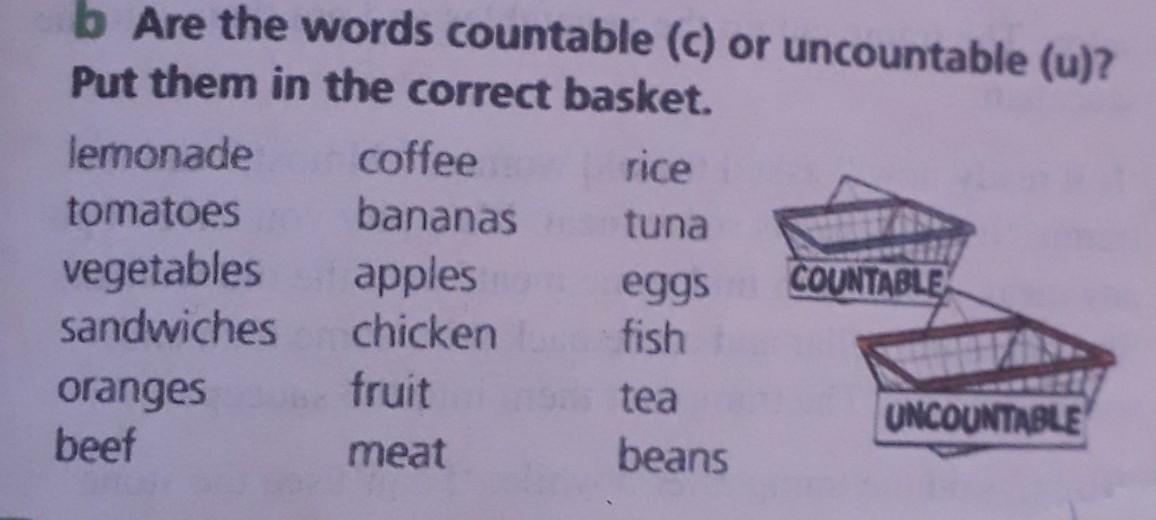 Countable: tomatoes, vegetables,sandwiches,oranges, bananas, apples,eggs,beans