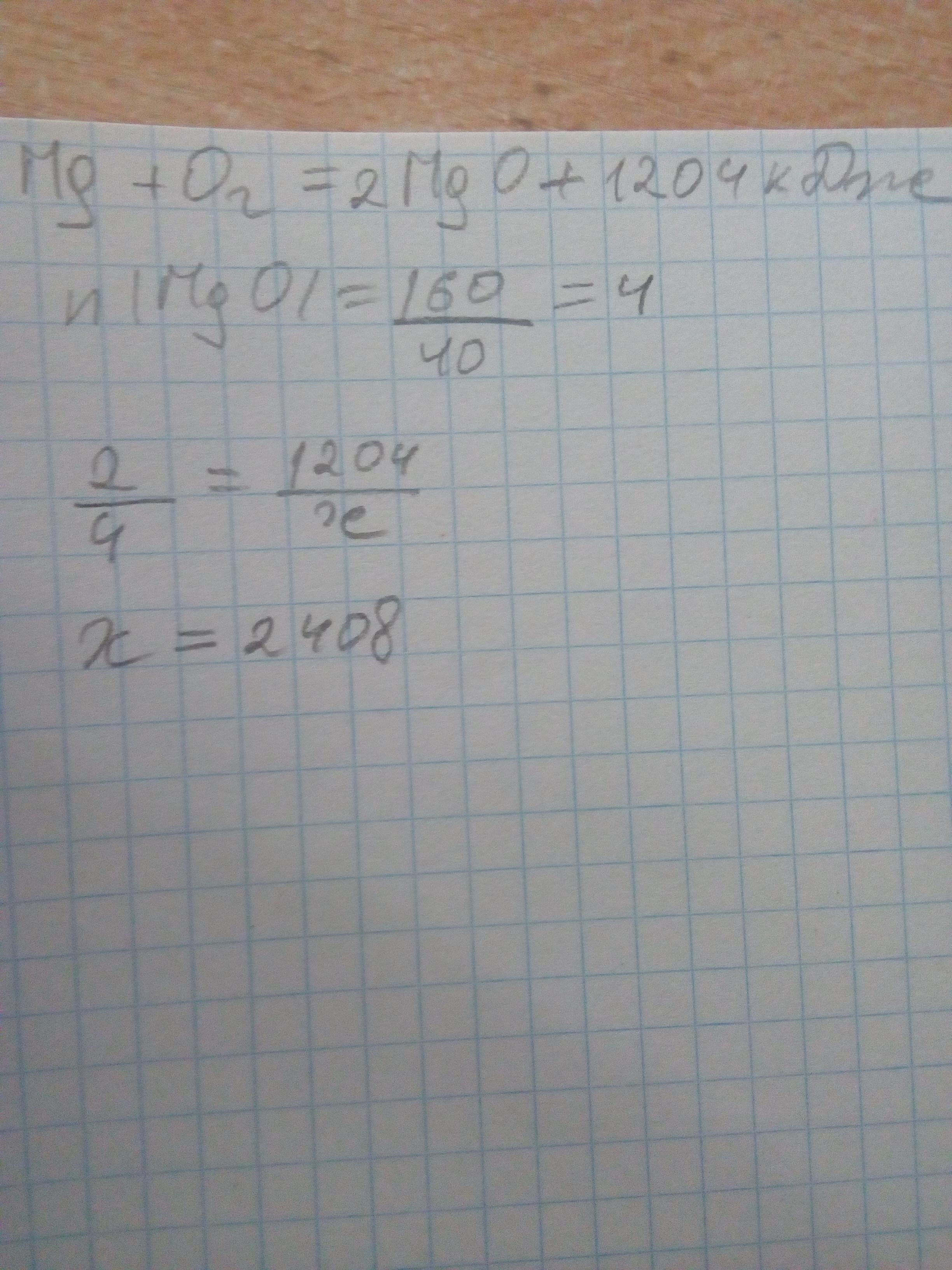 Определите количество теплоты, которое выделится при образовании 160 г MgO в результате
