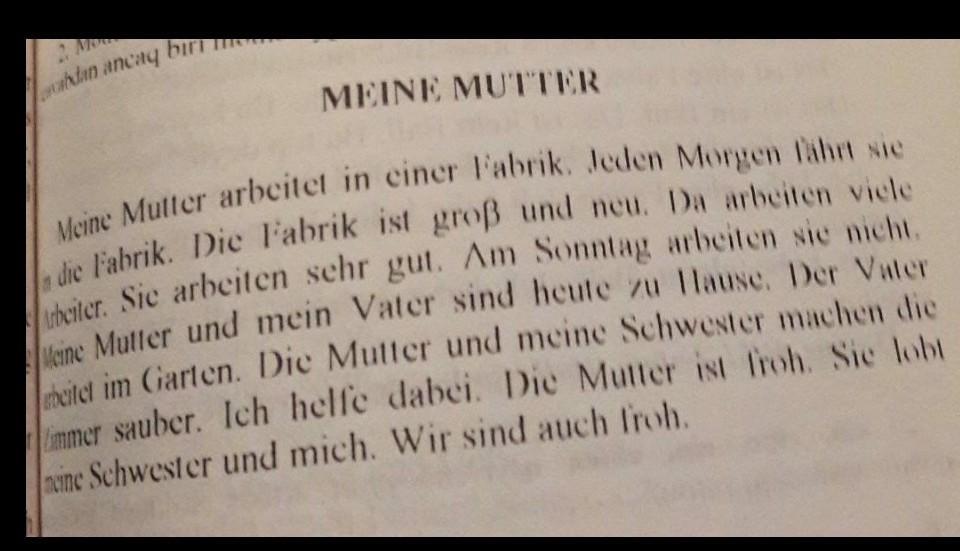 Моя мама работает на фабрике. Каждое утро она едет на фабрику. Фабрика большая и новая. Там работают много рабочих. Они работают очень хорошо. По воскресеньям они не работают. Моя мама и мой папа сегодня дома. Папа работает в саду. Мама и моя сестра убирают комнаты. Я им помогаю. Мама рада. Она хвалит меня и сестру. Мы тоже рады.
