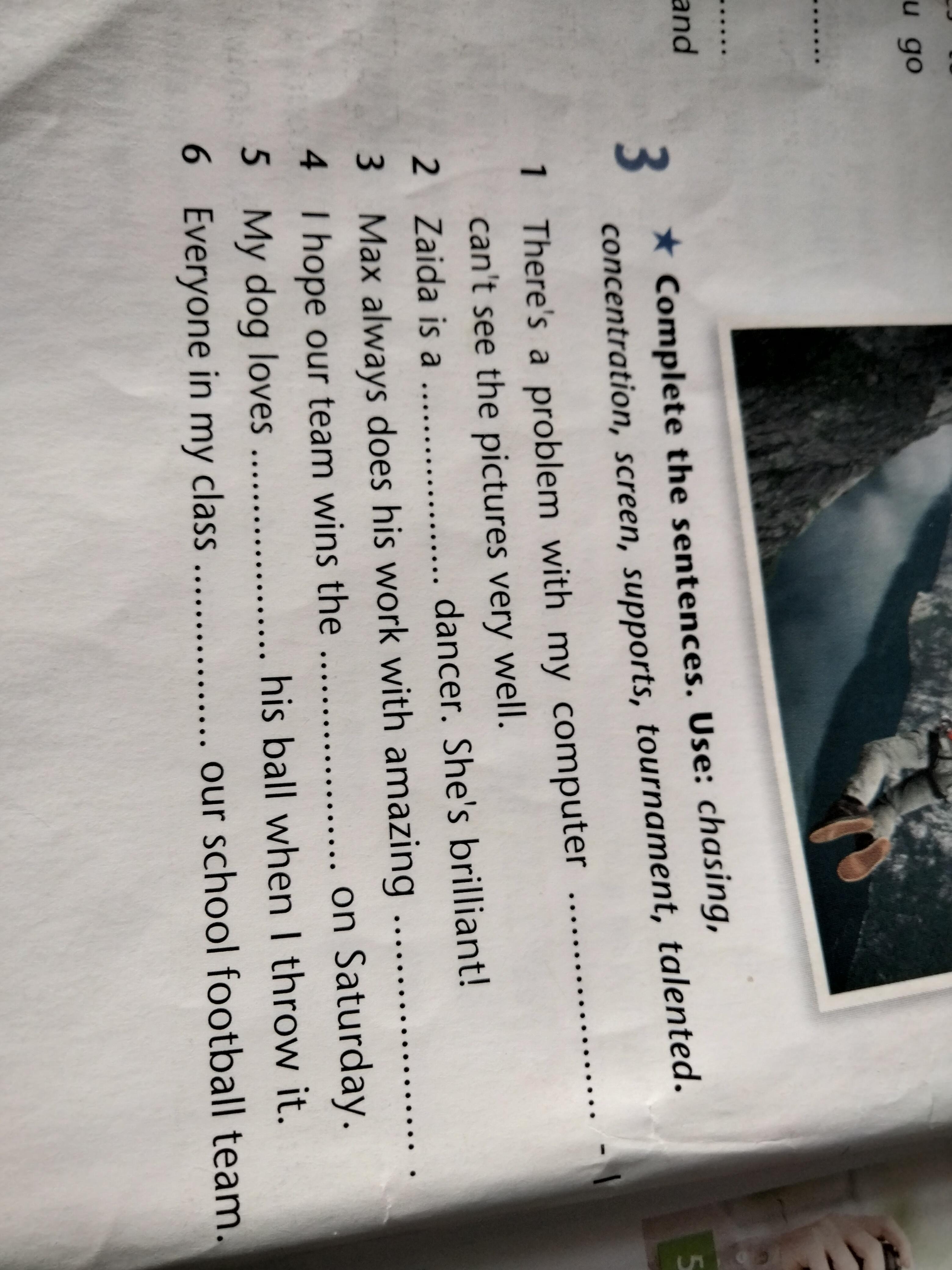 5 My dog loves chasing his ball when I throw it. 6 Everyone in my class supports our school football team.