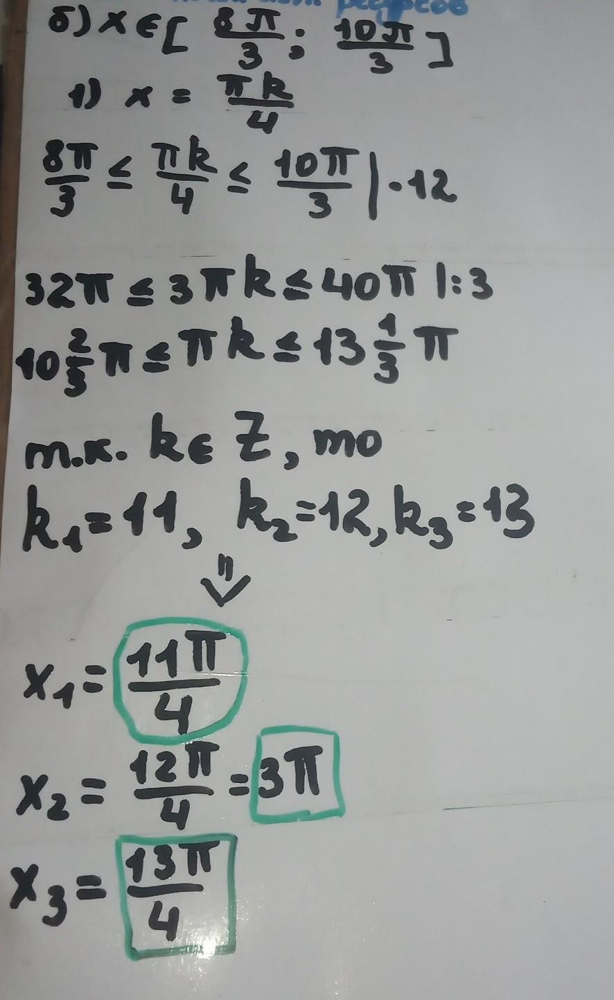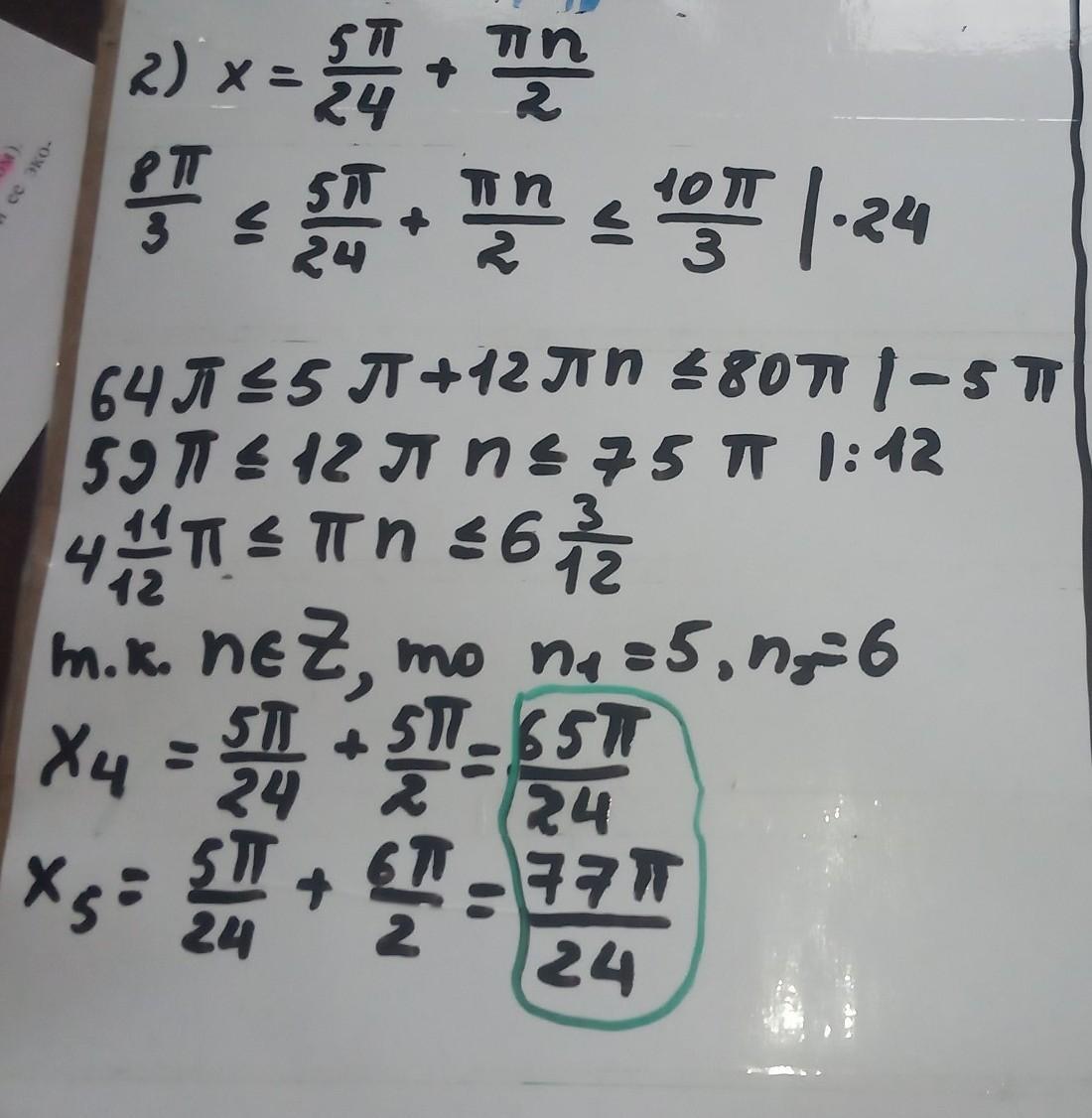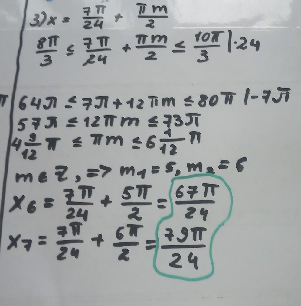 Я пропустила ещё один ответ : x = 65π/24 . Кто отметил нарушение и сейчас видно. Его отметила olga0olga76 .