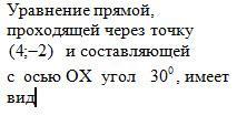 уравнение прямой проходящей через точку ( 4; -2 ) и составляющей с осью ОХ угол 30 градусов