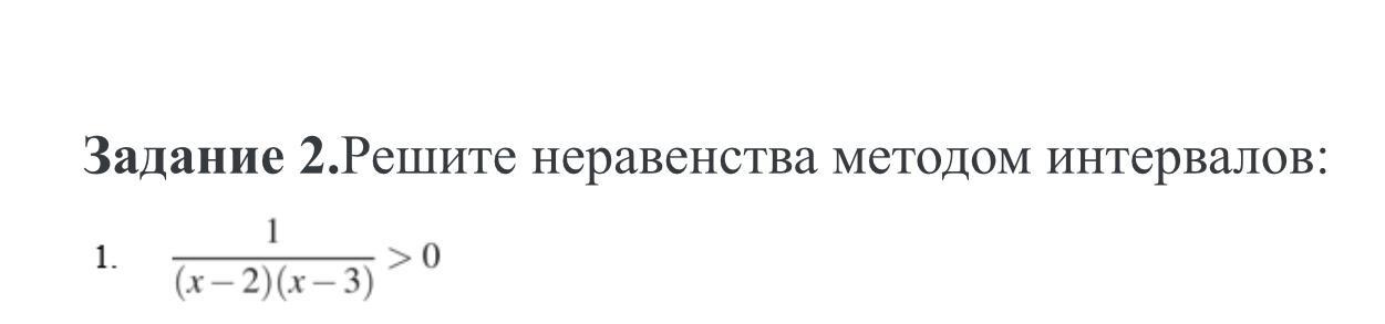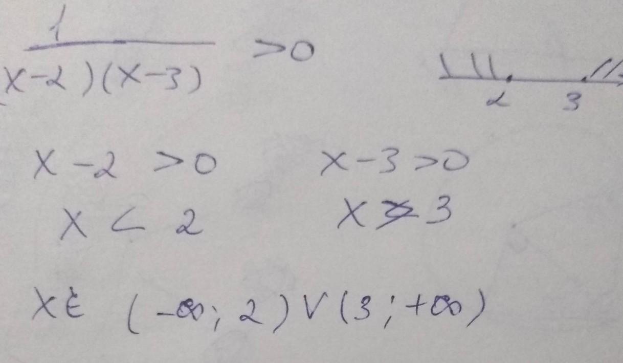 Итого, расставляя знаки в виде +-+ справа налево, видим, что решение такое: (-infinity; 2) U (3; +infinity).
