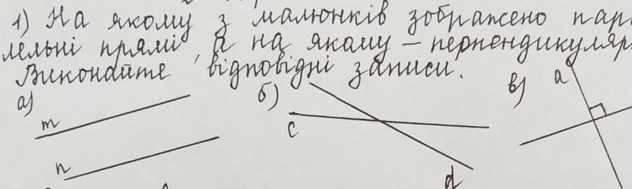 на рисунке в) перпендикулярные прямые, которые образуют при пересечении прямой угол 90°