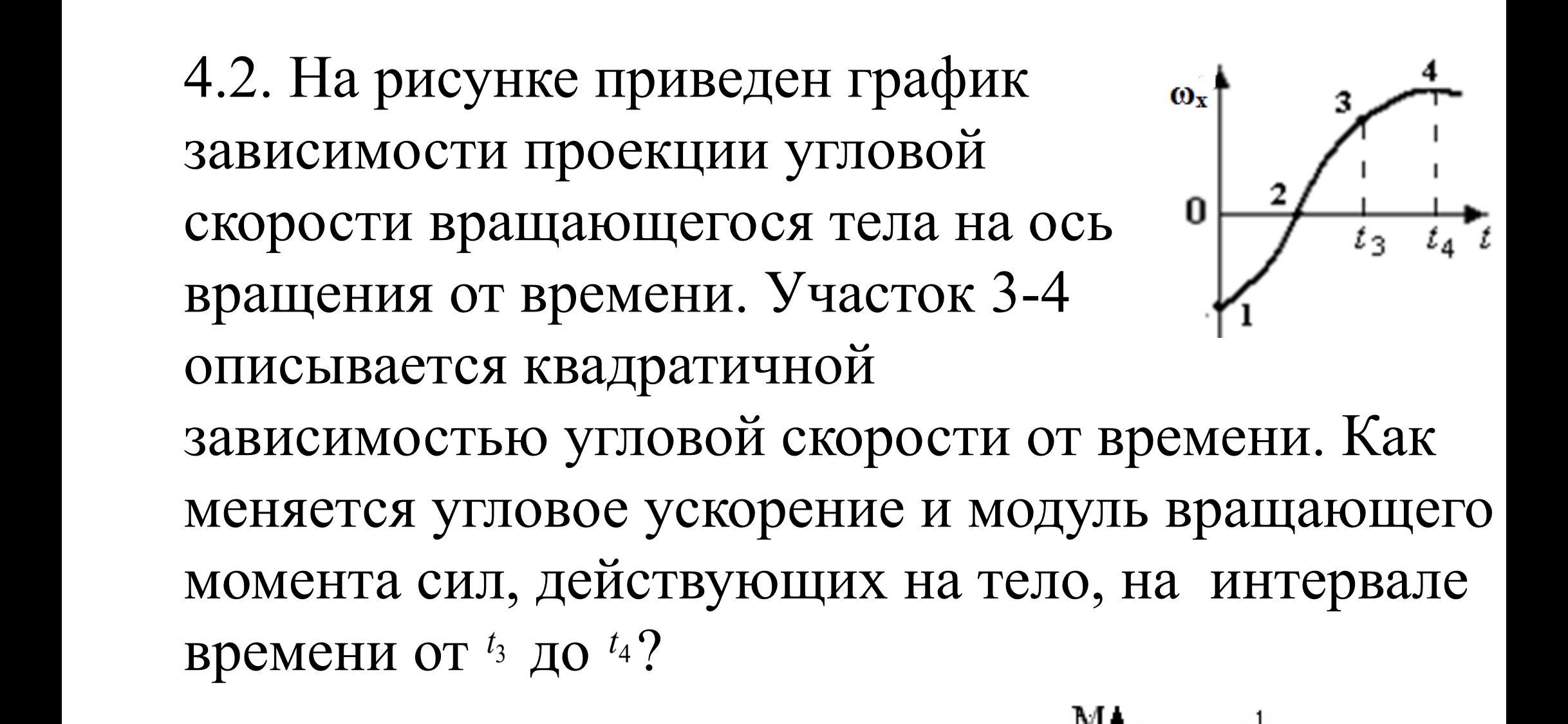 На участке 3-4 зависимость угловой скорости от времени квадратичная: