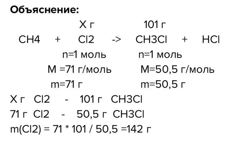 Сколько граммов хлора нужно для получения 101 гр метилхлорида?