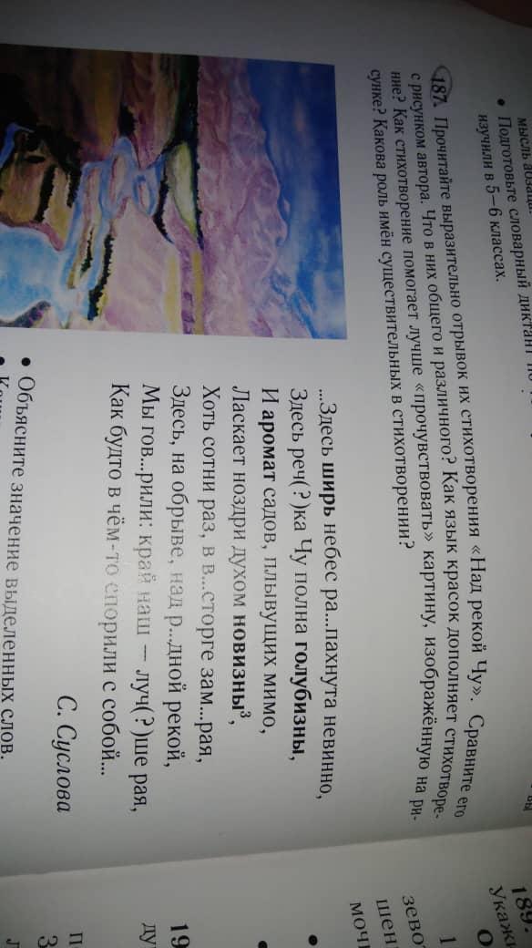 С. Суслова замечательно проиллюстрировала свое произведения. Глядя на рисунок и читая стихотворение, мы представляем милую сердцу автора картину: извилистая река, берущая начало в горных ледниках течет через цветущую землю, отражая синеву небес и неся с собой аромат возделанной земли. На рисунке высоту небес подчеркивают снежные горы, которых нет в стихотворении, а сады, дарящие аромат в стихотворение, лишь угадываются в густой зелени речной долины.