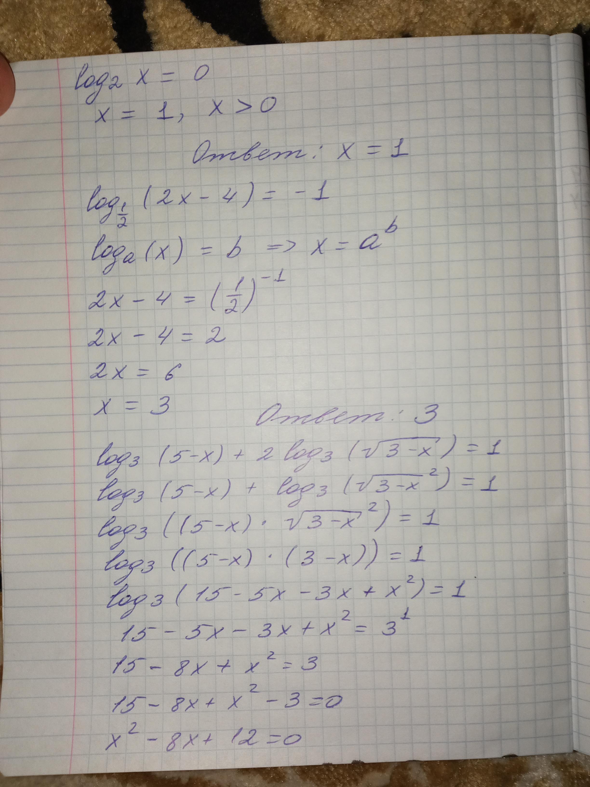 1) 2^0=x; x=1 2) (1/2)^(-2)=2x-4; 2х-4=4; 2х=8; х=4