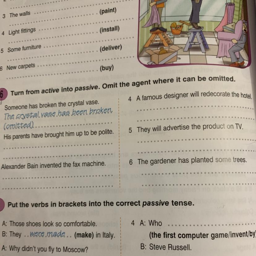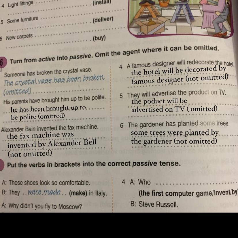 6 Turn from active into passive. Omit the agent where it can be omitted.