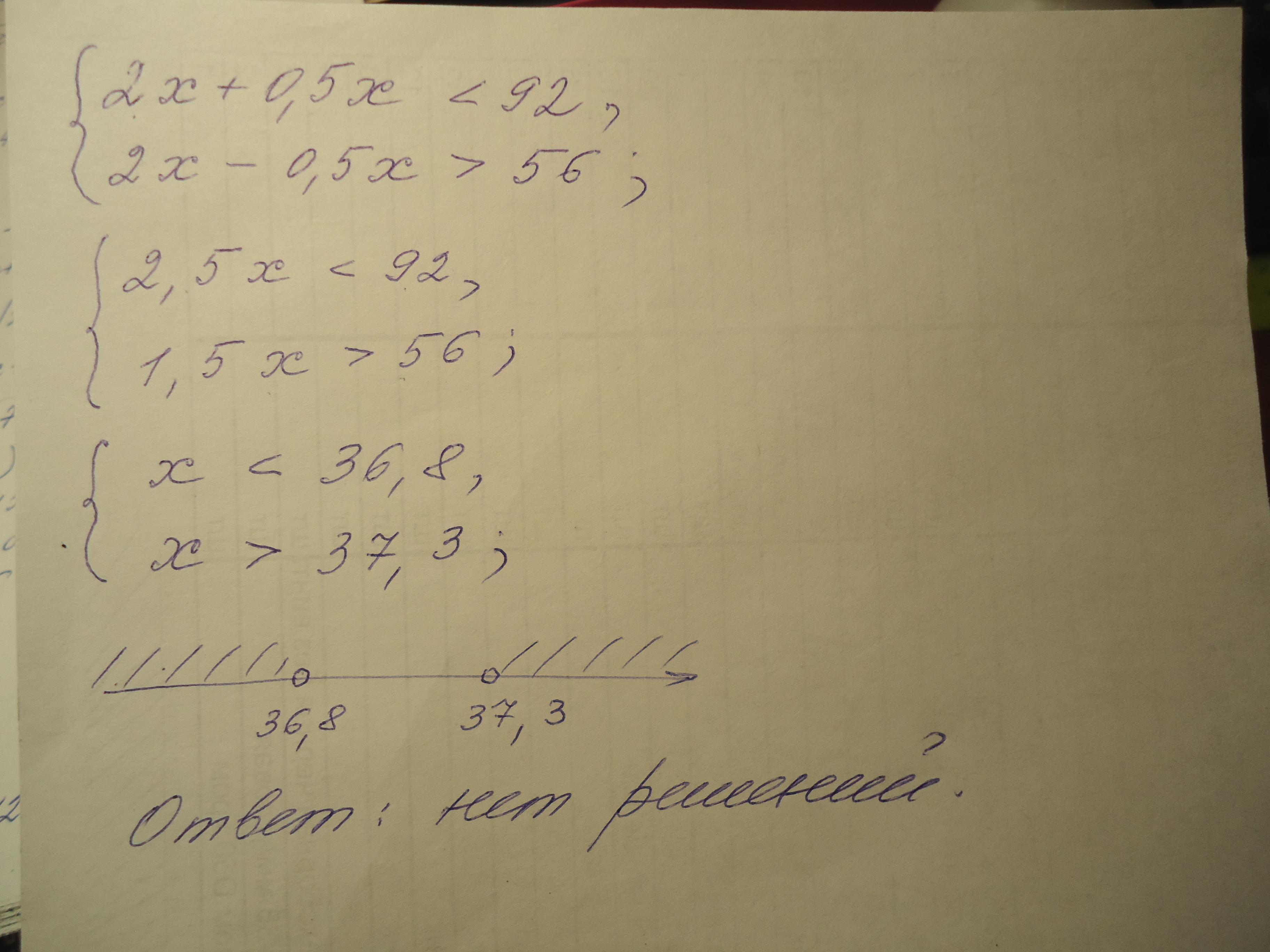 Если к удвоенному целому числу прибавить его половину, то получится число, меньше 92, если из удвоенного этого же целое числа вычесть его половину, то получится число, больше 56. Найдите это целое число. Пожалуйста