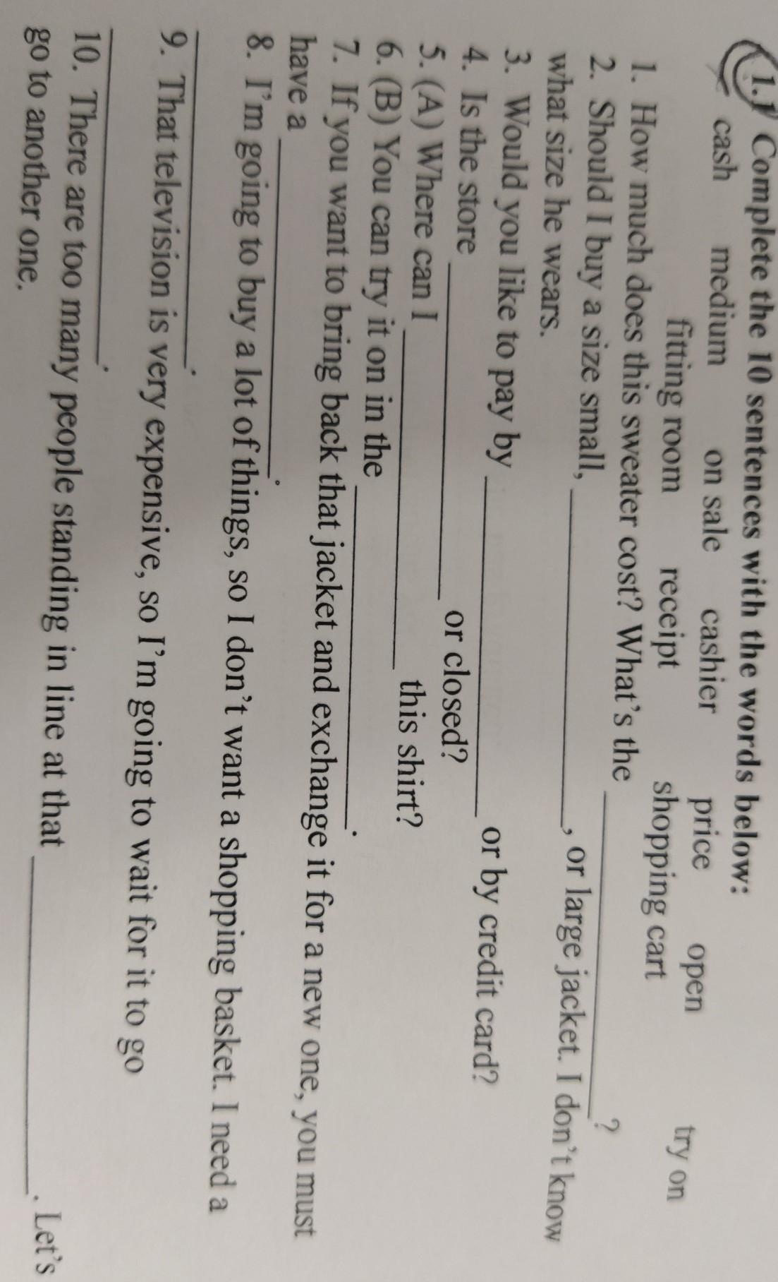 8. I'm going to buy a lot of things, so I don't want a shopping basket. I need a SHOPPING CART.