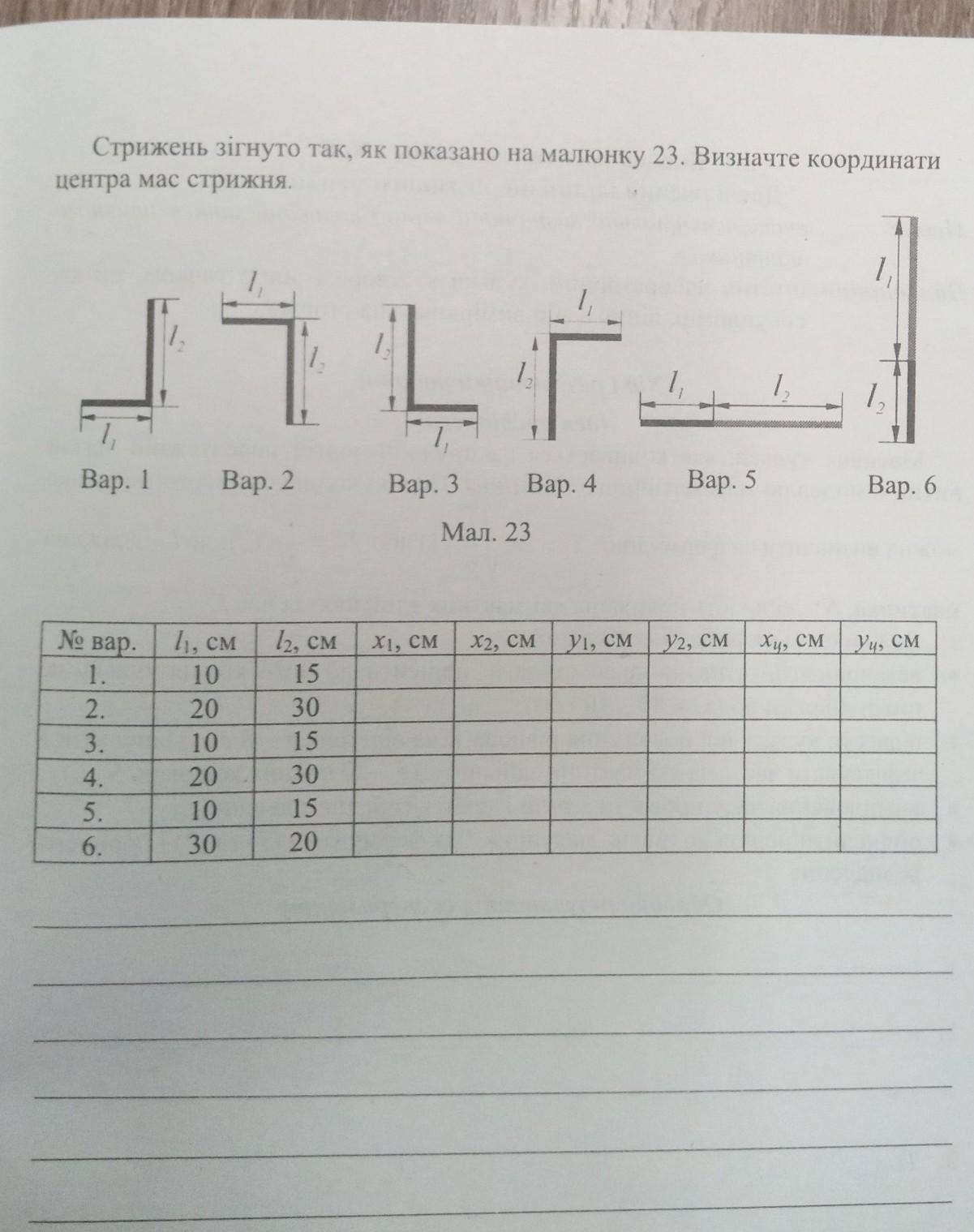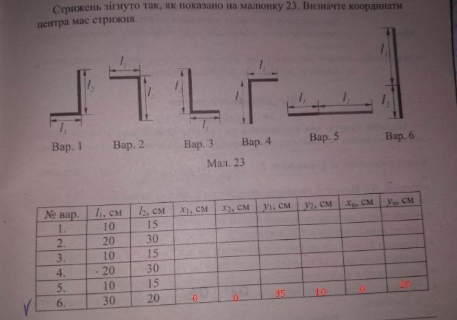 Стрижень зігнуто так, як показано на малюнку 23. Визначте координати