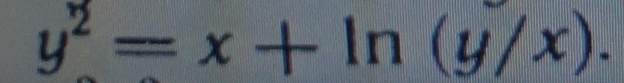 y^2=x+ln\dfrac{y}{x}\\\\2yy'=1+\dfrac{x}{y}\cdot \dfrac{y'x-y}{x^2}\ \ \ ,\ \ \ \2yy'=1+\dfrac{y'x-y}{xy}\ \ \ ,\ \ \ 2yy'=1+\dfrac{y'}{y}-\dfrac{1}{x}\\\\\\2yy'-\dfrac{y'}{y}=1-\dfrac{1}{x}\ \ \ ,\ \ \ y'\cdot \Big(2y-\dfrac{1}{y}\Big)=\dfrac{x-1}{x}\ \ ,\ \ \ y'\cdot \dfrac{2y^2-1}{y}=\dfrac{x-1}{x}\ ,\\\\\\\boxed{\ y'=\dfrac{y\cdot (x-1)}{x\cdot (2y^2-1)}\ }