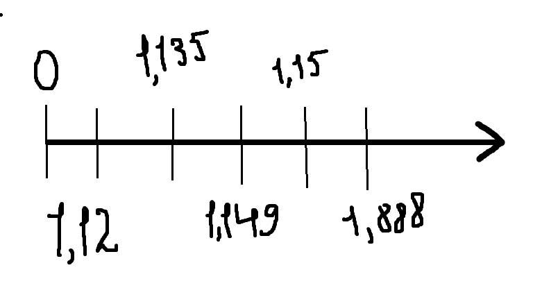 Расположите десятичные дроби на числовой оси и напишите их в порядке возрастания 1,12; 1,135; 1,15; 1,149; 1,188