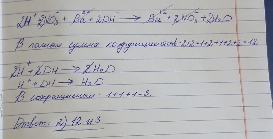 Суммы коэффициентов в полном и сокращённом ионных уравнениях реакции между азотной кислотой и гидрок-
