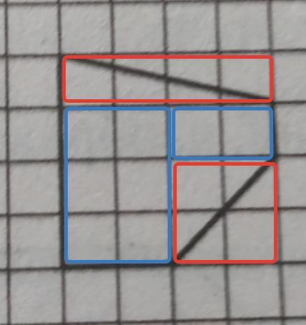 Синие прямоугольники - площади 6 и 2 см кв. Красные площади - 4 и 4 см кв, после деления пополам дают 2 и 2 см кв