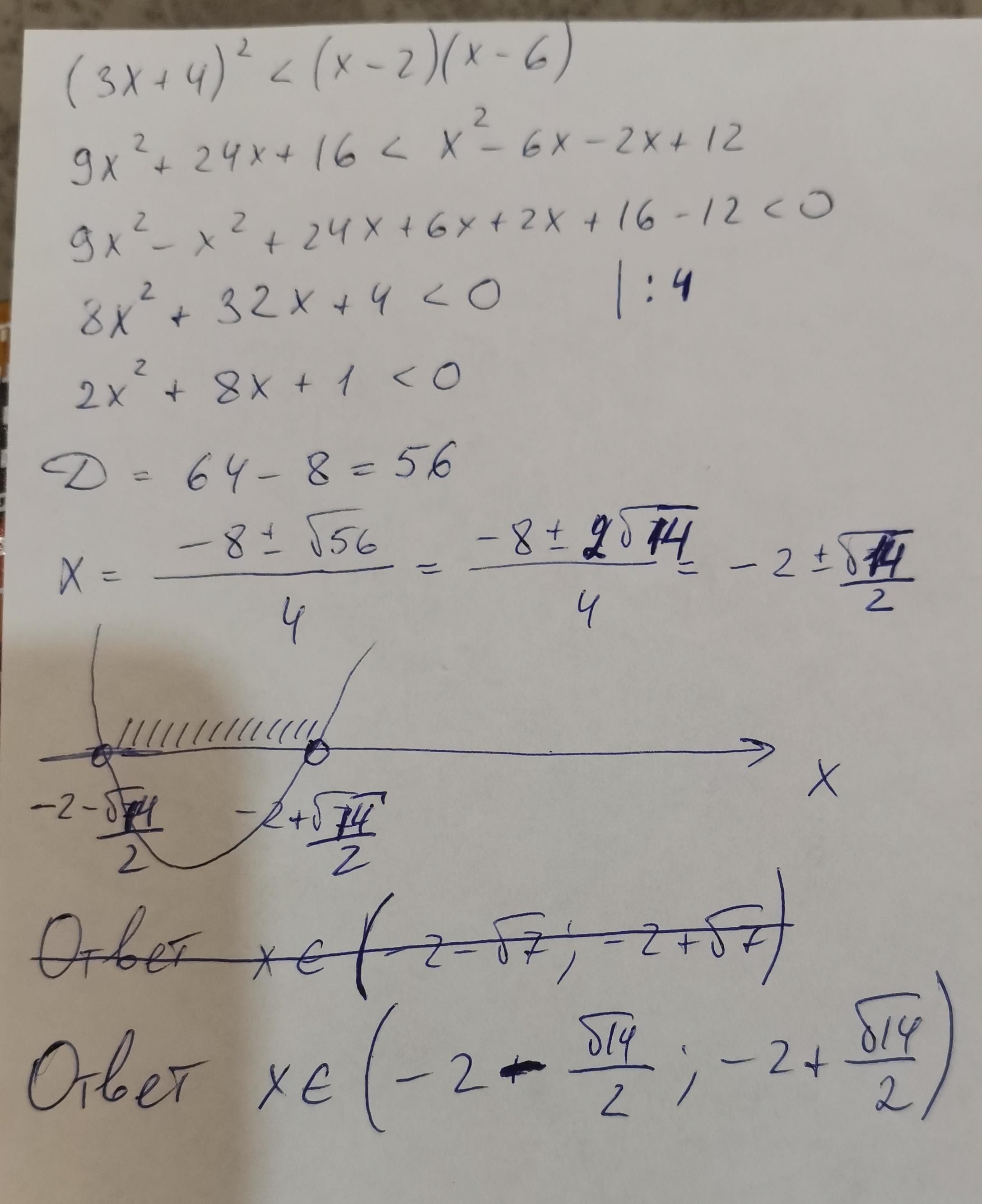 (3x + 4)²< (x - 2)(x-6)