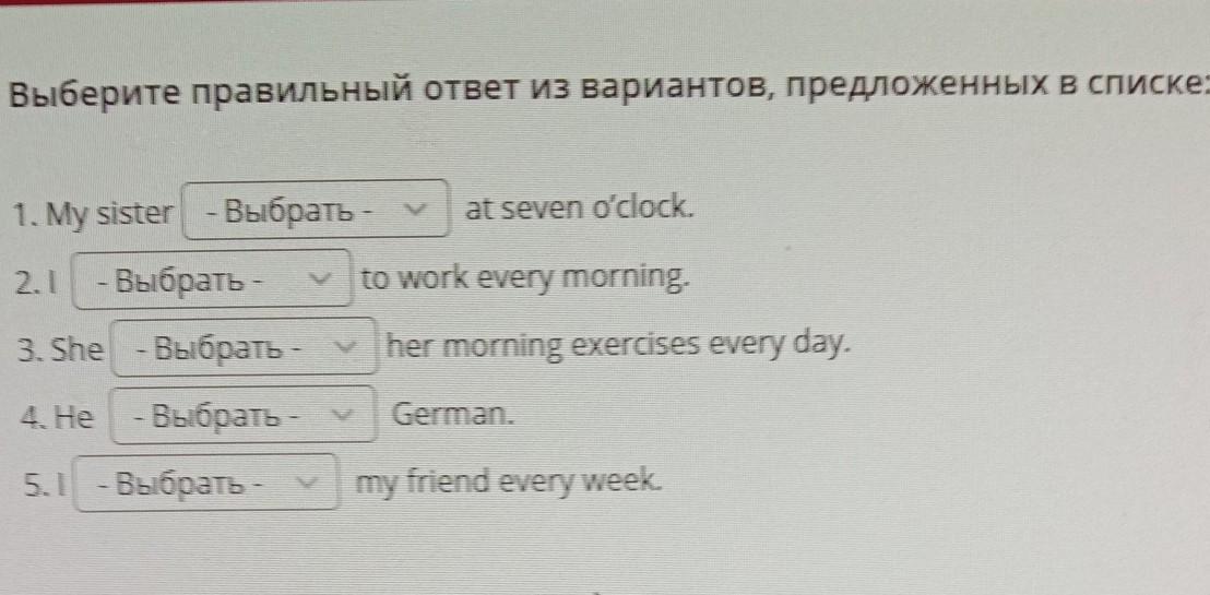 1.gets up 2. don't walk. 3.does. 4. speaks 5. visit