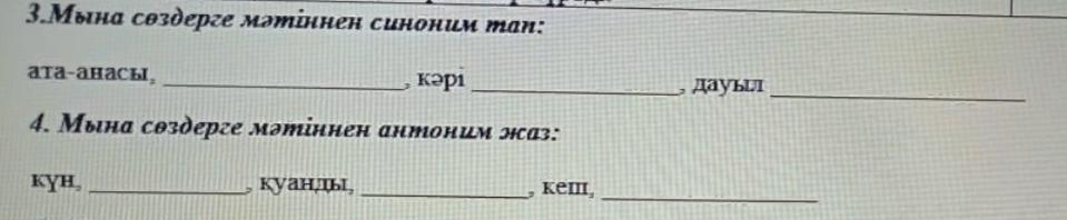 3) Ата-ана - әке-шеше, кәрі- қарт, дауыл - жел