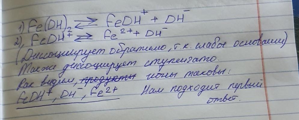 Какие ионы могут образоваться при диссоциации Fe(OH)2 ?