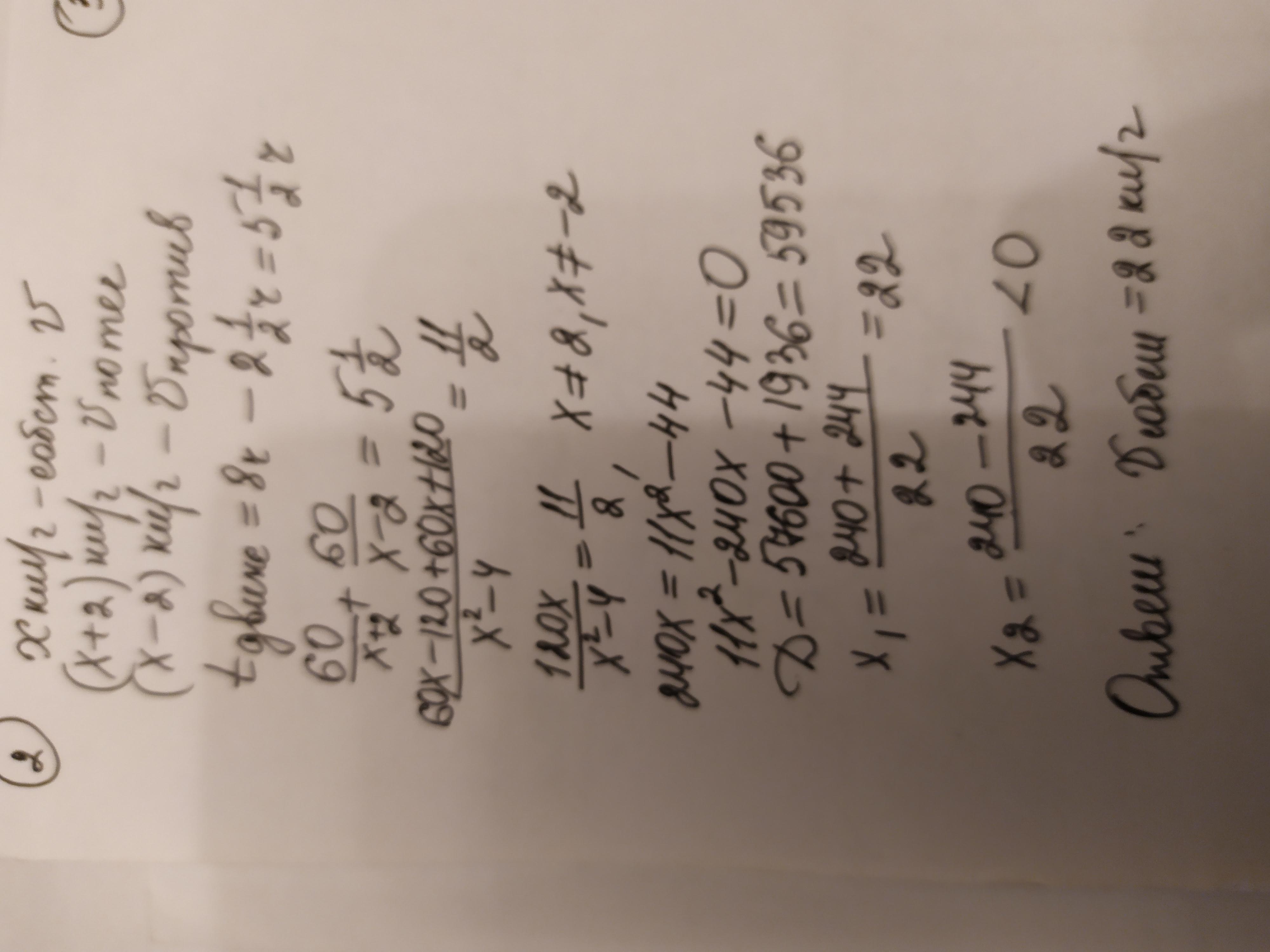 x₂=(240+244)/22=484/22=22 км/ч - скорость лодки.