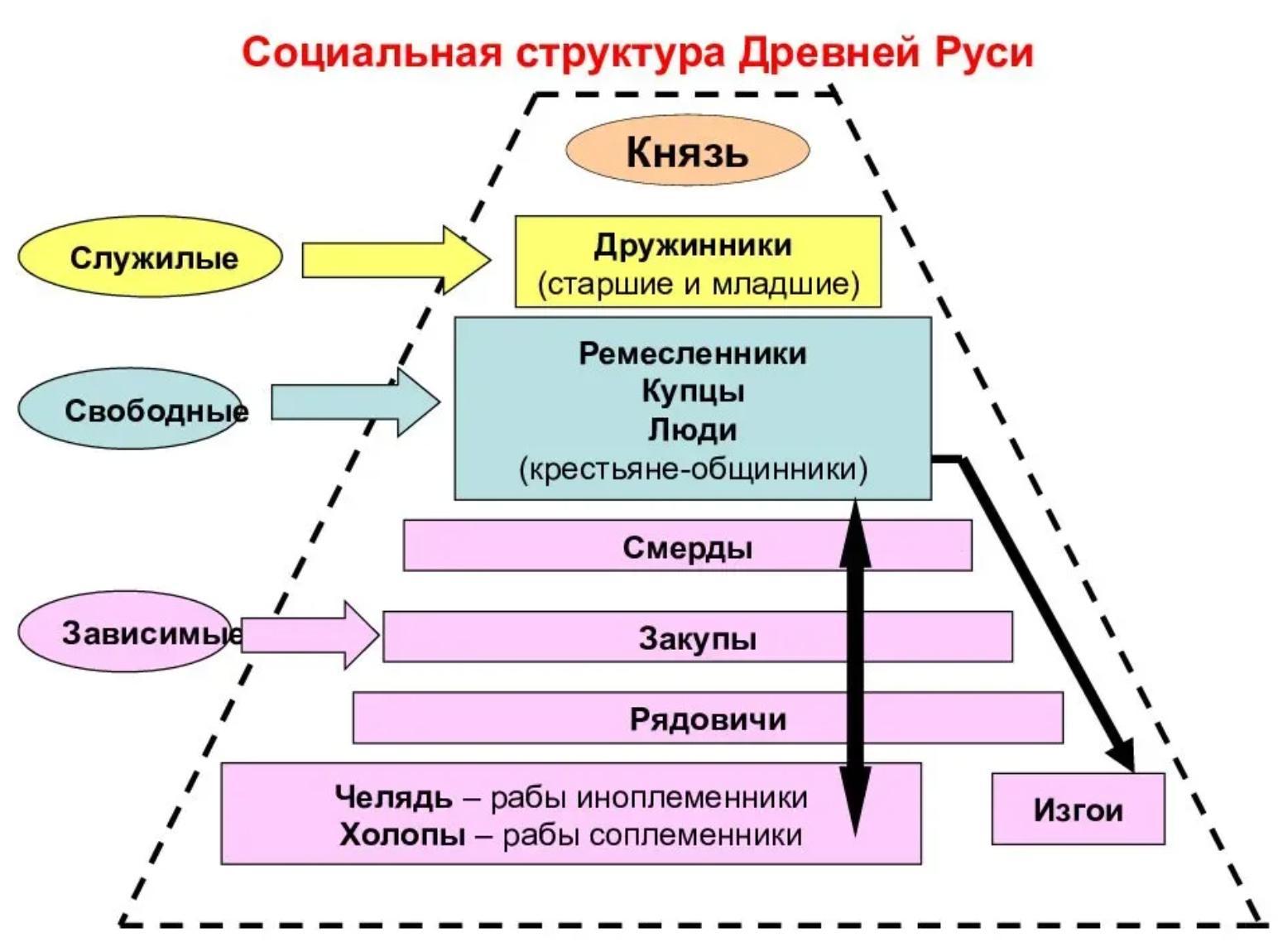 Заполните недостающие позиции в схеме "Социальная структура Древней Руси".