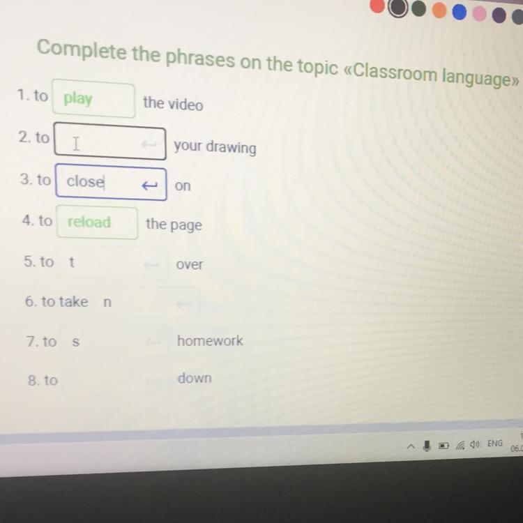 Там есть слова, потому что тут говориться заполнить фразы с темы "Язык в классе"