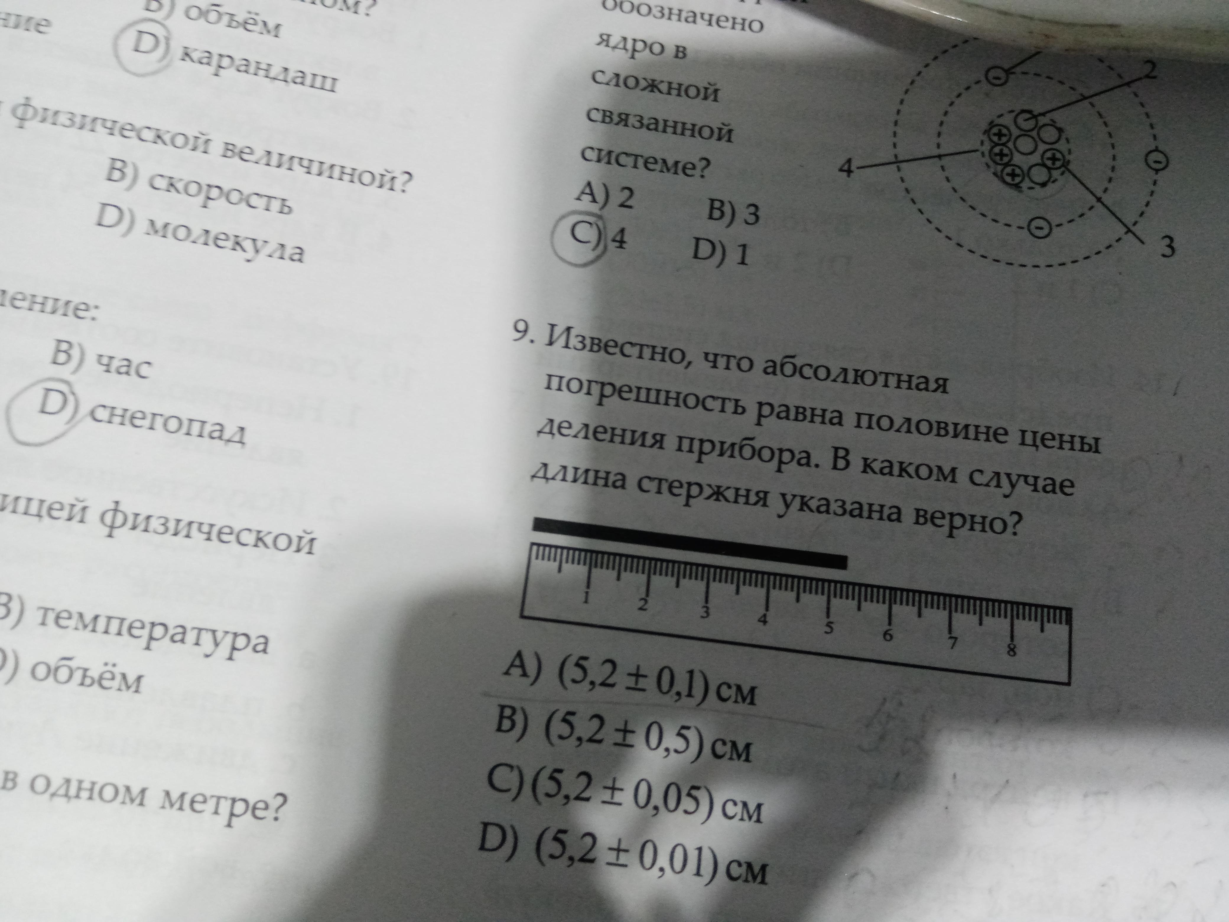 Цена беления шкалы линейки на рисунке 1 мм или 0,1 см. Половина цены деления шкалы соответственно равна 0,1 см ÷ 2 = 0,05 см